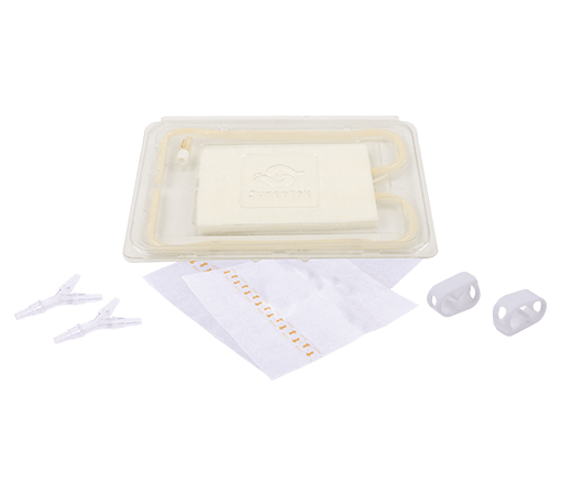 該產(chǎn)品主要由貼膜包和海綿包組成,其中貼膜包:由醫(yī)用貼膜、Y型接頭、夾子、組成,采用紙塑袋包裝,EO滅菌,有效期2年:海綿包:由醫(yī)用海綿、引流管/沖洗管組成,采用鋁箔袋包裝,鈷-60輻照滅菌,有效期2年,本產(chǎn)品一次性使用,最大使用負壓值為-450mmHg。